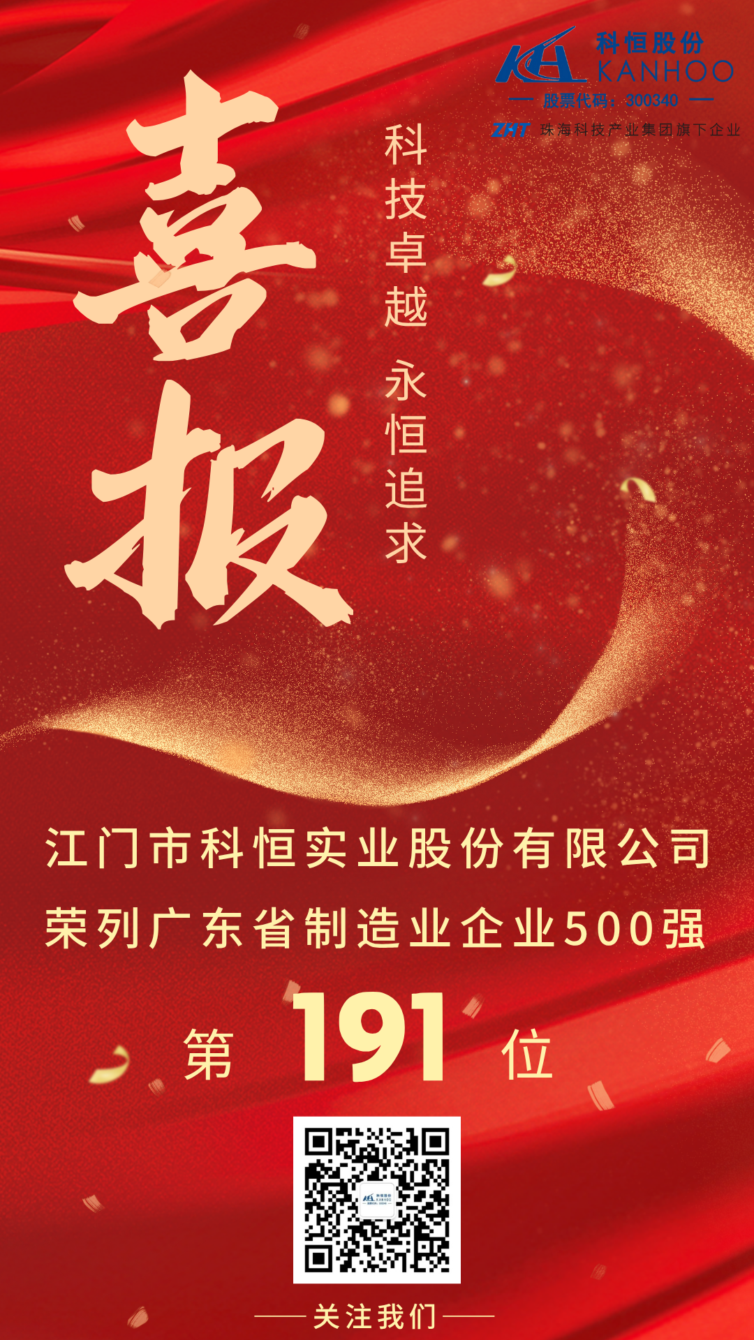 祝賀!江門市科恒實(shí)業(yè)股份有限公司入選廣東省制造業(yè)500強(qiáng)